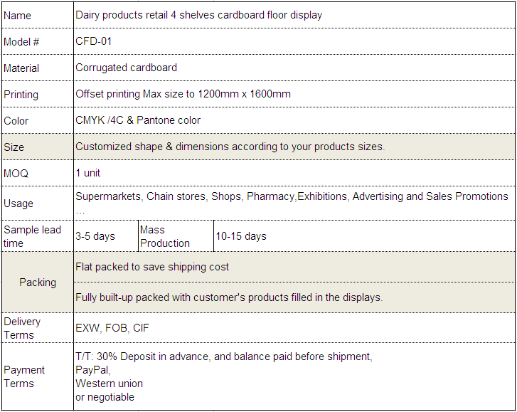 ![]() FAQ:Q: Is it customized cardboard display ? A: Yes, dimensions, shape, printings and patterns are customized. Q: MOQ? A: 1 unit. Q: Free sample ? A: No, but sample fee will be refunded in bulk order. Q: Can cardboard display hold heavy products? A: Yes, According to your cases, we will reinforce the display with iron tubes and thicker/stronger cardboard and with special constructure to hold the weight stably. Q: Lead time for sample and mass production? A: Using auto-cutting sampling machine, the normal lead time for blank white sample is 1~2 days, printed sample is 3~5 days and the bulk order is 15-20 days upon everything approved. Q: How will my order be packed, Can you provide the assembling service? A: Flat Packed, or You can have your Displays Pre Filled with merchandises and then fully built & packed. Flat-packed: Pack 1 or several sets of displays in one carton with assembly instruction sheet. Pre-filled & packed: (1) We send the fully-built displays to customer's factory for them to fill with the goods. (2) Or customer's suppliers send the goods to us and then we build the display and fill with the goods, and send the displays directly to customer. Q: How do I know my product will arrive safely to my customers? A: We manages the flow of materials from concept through delivery. We are strict performer of quality control in accordance with IS09001:2008 Certificate. Our QC department will take the inspection before shipment, the QC report with results and relevant pictures will be sent to you. We have a long-term partnerships to delivery to goods to all over the world that we can proof our goods is safely and speedy arrive customer request space. Q: Do you provide door to door service? A: Yes, we have cooperated with DHL/UPS/FedEx/TNT/EMS for many years, they can deliver your products safely and timely to all over the world. |